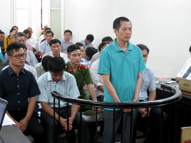 13 bị cáo bị truy tố về tội “Cố ý làm trái quy định của Nhà nước về quản lý kinh tế gây hậu quả nghiêm trọng” trong phiên xử. Ảnh: nguoilaodong