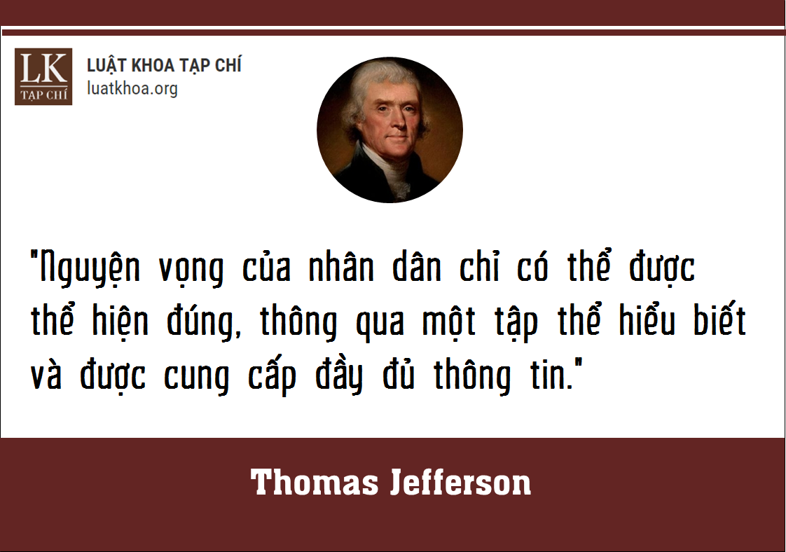Thomas Jefferson tin rằng con người cần “đầy đủ thông tin về các vấn đề của họ thông qua các kênh công báo”, một nền dân chủ lành mạnh phụ thuộc vào việc toàn thể công dân có hiểu biết được hưởng quyền tiếp cận các luồng tự do tư tưởng và tranh luận về các vấn đề quan trọng đối với họ. Nơi chủ nghĩa độc tài thắng thế, ngược lại, sáp nhập báo chí vào chính quyền (chính thức hoặc không chính thức) và sống sót bằng cách thu hẹp các luồng tư tưởng về các vấn đề nổi cộm nhằm đảm bảo “sóng yên biển lặng” vì người dân không hay biết gì./.