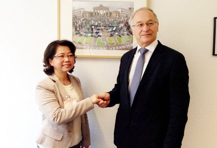 Bà Lê Thị Minh Hà gặp gỡ ông Martin Patzelt, nghị sĩ, thành viên Ủy ban Nhân quyền Quốc hội Đức năm 2014 để vận động sự ủng hộ cho Anh Ba Sàm. Ảnh: Nhân vật cung cấp.