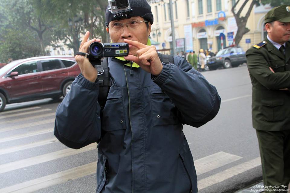Nhà báo Ba Sàm (Nguyễn Hữu Vinh) tác nghiệp trong một sự kiện ở Hà Nội. Ảnh: anhbasam.wordpress.com.