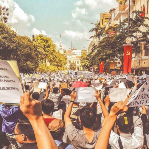 Trong các cuộc biểu tình đòi minh bạch vấn đề thảm họa môi trường biển miền Trung tại VN, đã có báo cáo về việc mạng xã hội bị chặn. Sài Gòn tháng 5/2016 (Ảnh: fvpoc.org)