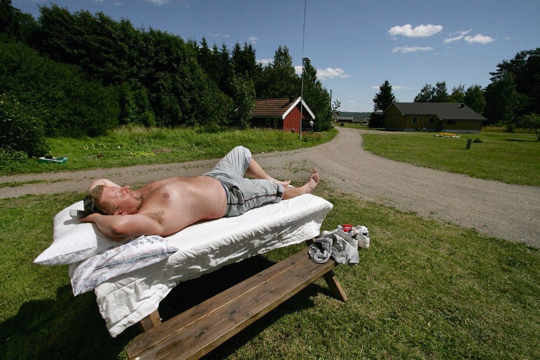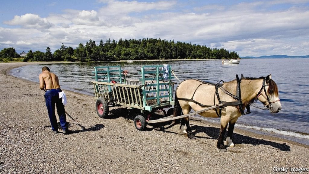 Một tù nhân đang quét dọn bãi biễn của nhà tù Bastoy, Norway. Ảnh: Getty Images.