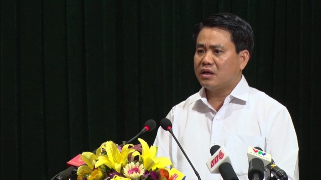 Ông Nguyễn Đức Chung phát biểu tại buổi công bố dự thảo kết luận thanh tra đất Đồng Tâm. Ảnh: Báo Hà Nội Mới