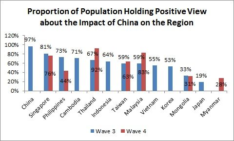 Một phần của cuộc khảo sát được dành cho các câu hỏi liên quan đến sự trỗi dậy của Trung Quốc trong khu vực và thái độ của người dân ở các nước đối với điều đó. Có tới 55% số người Việt Nam được khảo sát trong đợt khảo sát thứ 3 (Wave 3 – thực hiện tại Việt Nam từ tháng 9 đến tháng 10 năm 2010) cho biết là họ có cái nhìn tích cực (positive view) về ảnh hưởng của Trung Quốc lên khu vực Châu Á.