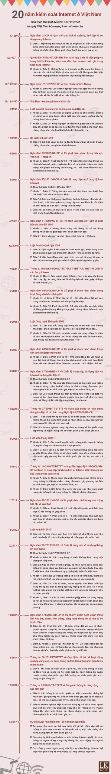 Cùng Luật Khoa tạp chí nhìn lại 20 năm làm luật nhằm kiểm soát Internet từ ngày Việt Nam hòa mạng Internet toàn cầu, ngày 19/11/1997.