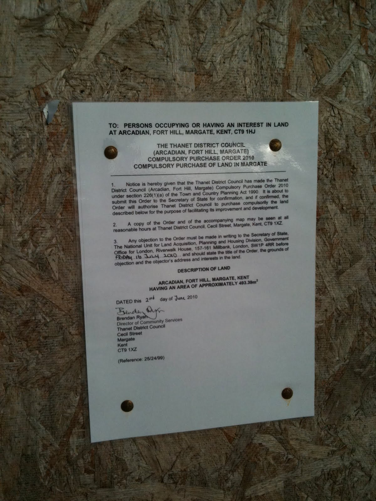 Một tờ thông báo cưỡng bách mua lại được dán nơi công cộng tại Kent, Anh quốc. Ảnh: margatearchitecture.blogspot.co.uk.
