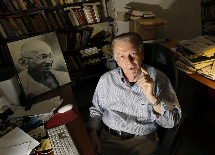 Gene Sharp tại văn phòng Viện Albert Einstein ở Boston, năm 2009. Ảnh: AP.