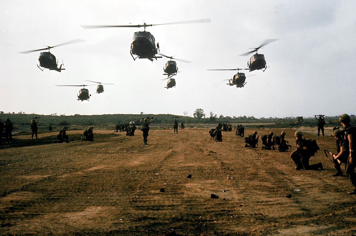 Lính và trực thăng Mỹ tại Mỹ Lai ngày 16/03/1968 – Ảnh: Ronald S. Haeberle/The LIFE Images/Getty Images