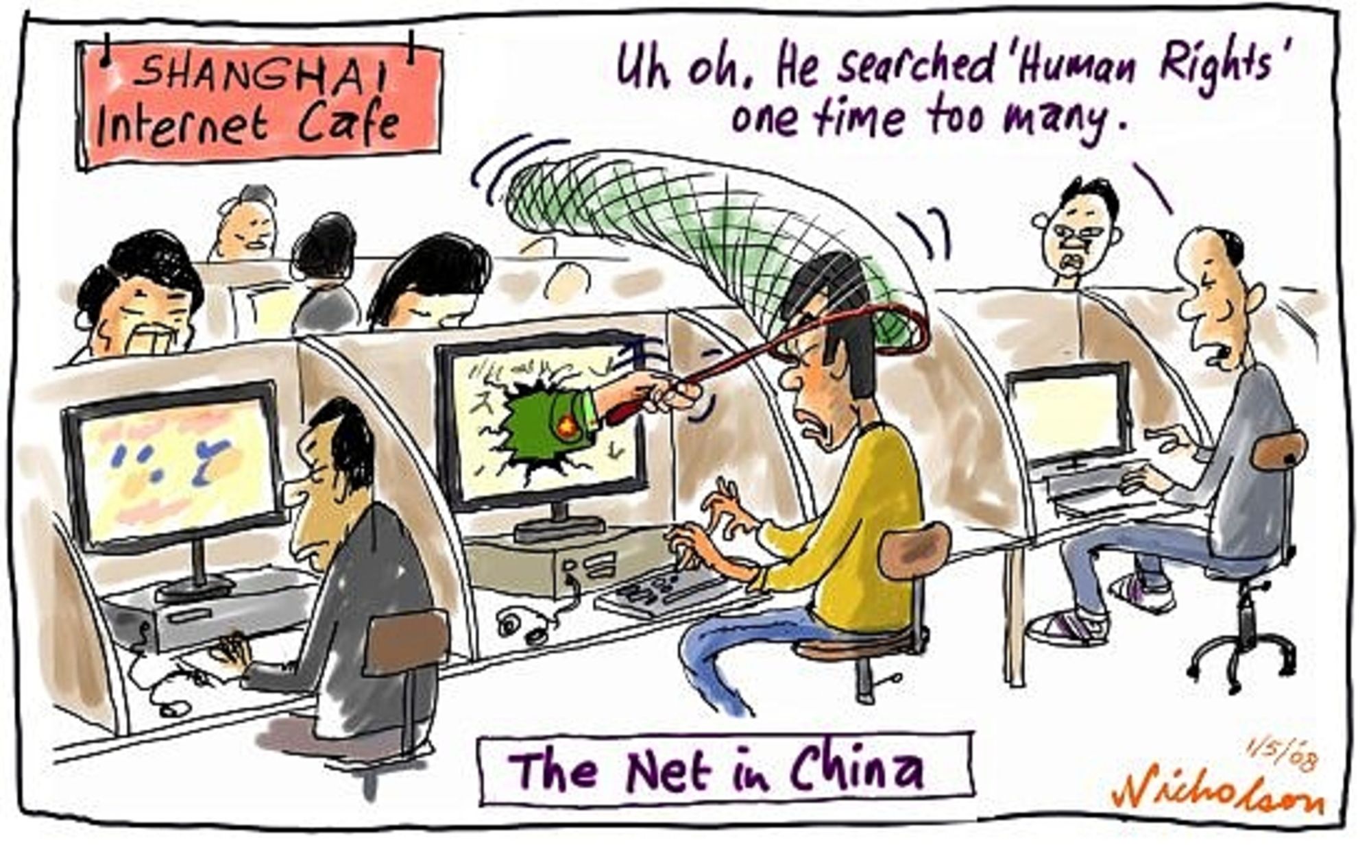 “Uh oh. Anh ta tìm kiếm từ khoá ‘nhân quyền’ quá nhiều lần”. Tranh: Nicholson.