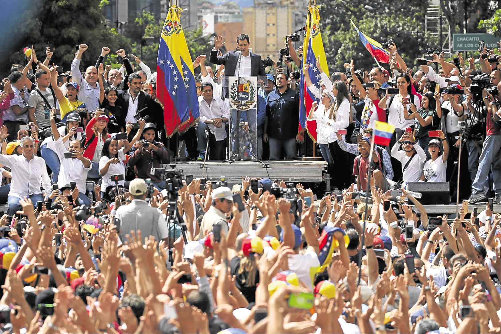 Thủ lĩnh đối lập Juan Guaidó trong một cuộc biểu tình chống chính quyền Maduro, tháng 1/2019. Ảnh: New Europe.