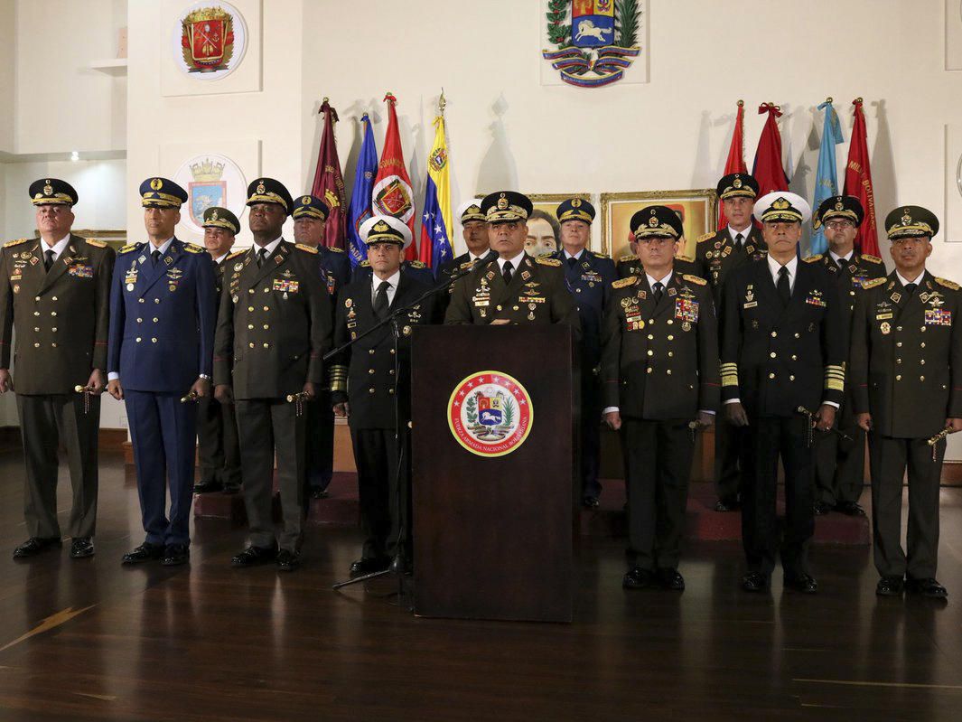 Việc trấn an quân đội là rất quan trọng vì đây là một trụ cột thiết yếu của liên minh cầm quyền Maduro. Các lực lượng vũ trang kiểm soát các bộ ngành của chính phủ, cả ngành công nghiệp dầu mỏ, phân phối thực phẩm và an ninh nội bộ. Các chỉ huy quân sự cấp cao cho đến nay vẫn miễn cưỡng nghe lệnh Maduro vì sợ phải chịu trách nhiệm bởi một chính phủ kế nhiệm. Các sĩ quan trẻ, cho dù đều không hài lòng với chế độ Maduro, nhưng họ bị giám sát rất chặt chẽ.