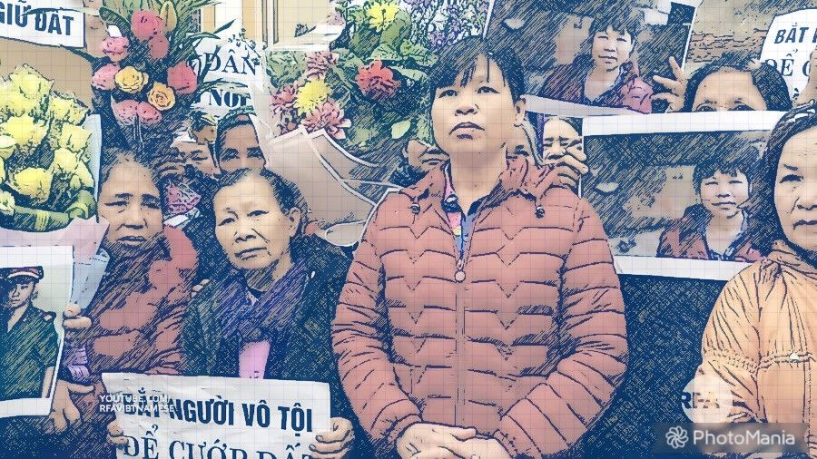 Lãnh đạo nông dân Cấn Thị Thêu. Ảnh gốc: RFA. Đồ hoạ: Luật Khoa.