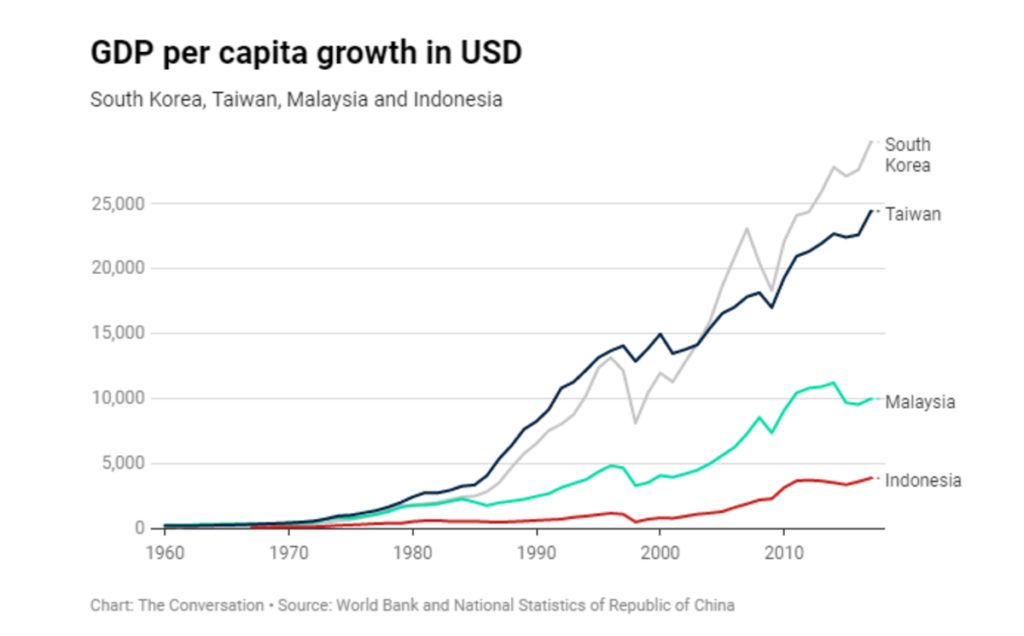 Dịch từ bài báo “How South Korea and Taiwan grew their economies, while Malaysia and Indonesia trailed behind” của học giả Chairil Abdini, giảng viên môn “Phân tích các Quyết định và Chính sách Công”, Đại học Quốc gia Indonesia, đăng trên The Conversation ngày 4/7/2019.