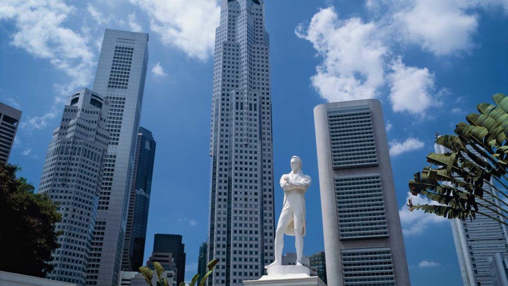 Đây là Boat Quay, một địa điểm nổi tiếng ở Singapore, không những vì nó là trung tâm thương mại sầm uất nhất đảo quốc này, mà còn vì một bức tượng được đặt trang trọng bên bờ sông Singapore. Người đàn ông có được vị trí đặc biệt đó mang tước hiệu hiệp sĩ Hoàng gia Anh, bức tượng của ông cũng được cho là được đặt đúng nơi mà 200 năm trước đây ông đã đặt chân tới Singapore lần đầu tiên.