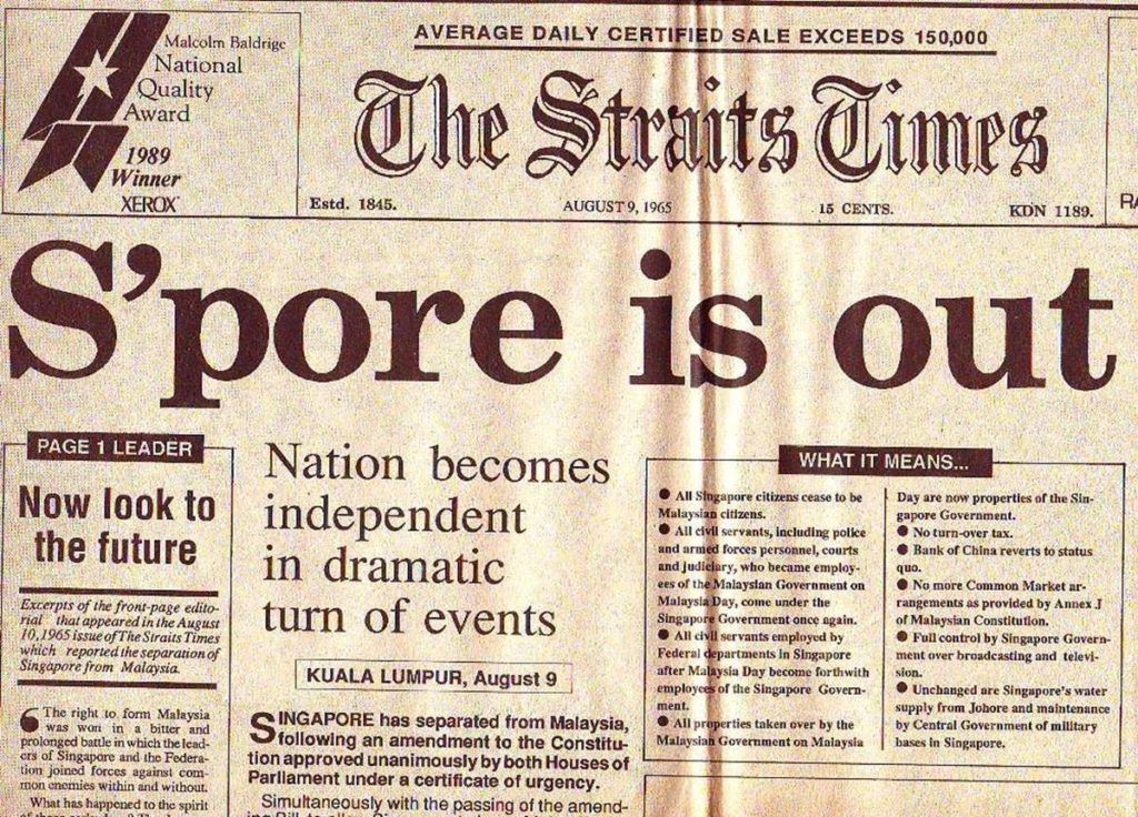 Ngày 9/8/1965, Singapore chính thức tách ra khỏi Liên bang Malaysia, theo yêu cầu của chính quyền liên bang.