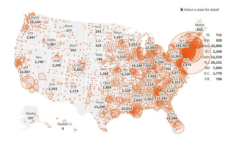 Cho đến nay, Mỹ đã bước sang ngày thứ hai dẫn đầu thế giới về số người chết với 20.608 ca trong tổng số 530.006 ca nhiễm.