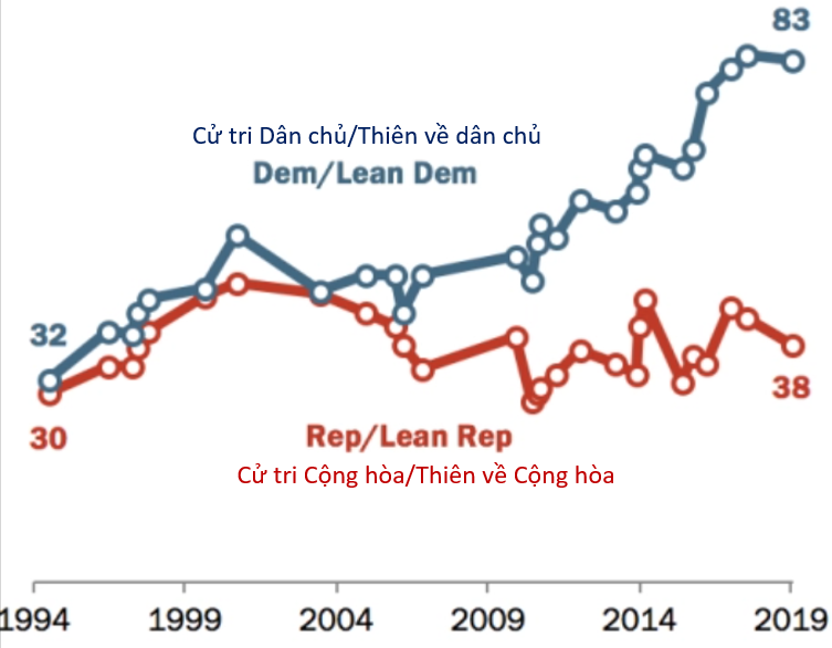 Đảng Cộng hòa thường muốn hạn chế người nhập cư vào nước Mỹ, đồng thời muốn trục xuất người ở Mỹ không có giấy tờ hợp pháp. Trong khi đó, Đảng Dân chủ muốn tạo cho những người nhập cư ở Mỹ không có giấy tờ cơ hội được ở lại. Nhìn chung, đại đa số cử tri Dân chủ (83%) ủng hộ nhập cư, ngược lại, 30-40% cử tri Cộng hòa chống nhập cư.