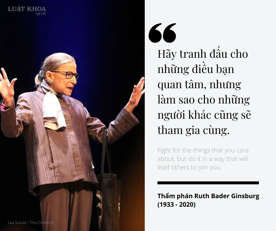 Những phát ngôn ấn tượng của Thẩm phán Tối cao Pháp viện Hoa Kỳ Ruth Bader Ginsburg (1933 – 2020), người để lại dấu ấn đặc biệt trong cuộc tranh đấu cho quyền của phụ nữ cũng như quyền bình đẳng giới nói chung ở Hoa Kỳ.