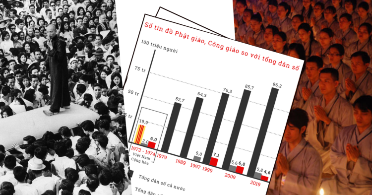 Phật giáo – tôn giáo có khoảng 2.000 năm phát triển ở Việt Nam – nay chỉ còn lại 4,6 triệu tín đồ, chiếm khoảng 4,78% tổng dân số.