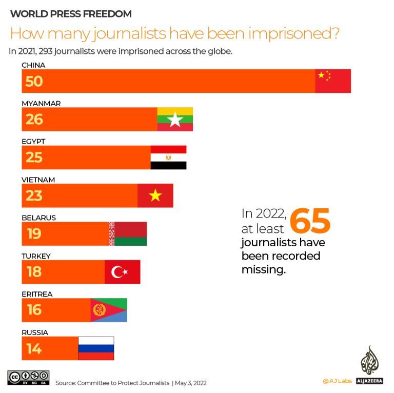 Con số các nhà báo, blogger bị bắt giữ và xử lý hình sự tại Việt Nam đang thuộc nhóm đứng đầu thế giới.