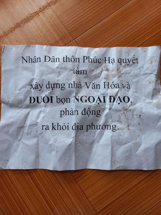 Đến ngày 11/7/2023, một số tờ rơi có nội dung ủng hộ chính quyền được rải xung quanh khu vực giáo họ.