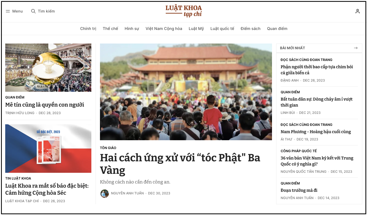 Xin cảm ơn bạn đã đến và đồng hành cùng Luật Khoa trong năm qua! Chúng tôi rất mong sẽ mang đến cho bạn nhiều thông tin và kiến thức bổ ích hơn nữa trong năm 2024. Và điều tối thiểu bạn luôn có thể kỳ vọng ở Luật Khoa là chúng tôi làm báo độc lập, không sợ ai và không nịnh ai.