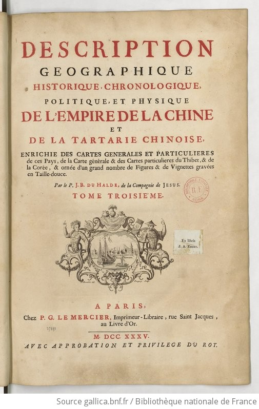 Tác phẩm đồ sộ với 3.000 trang này đã mô tả toàn diện về Trung Quốc theo quan điểm của các tu sĩ dòng Tên. The Du Halde, đây là một quốc gia thịnh vượng nhờ tuân thủ các luật pháp và phong tục truyền thống cũng như tin vào sự tự lực cánh sinh.