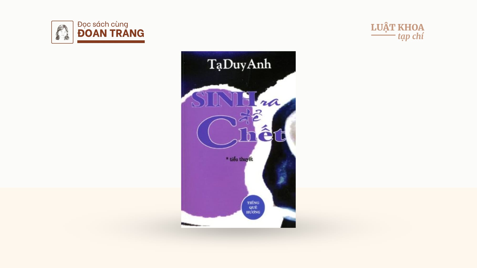 Chuyên mục Đọc sách cùng Đoan Trang tuần này xin được giới thiệu quyển tiểu thuyết Sinh ra để chết của nhà văn Tạ Duy Anh, do nhà xuất bản Tiếng Quê Hương (Mỹ) xuất bản vào năm 2008.