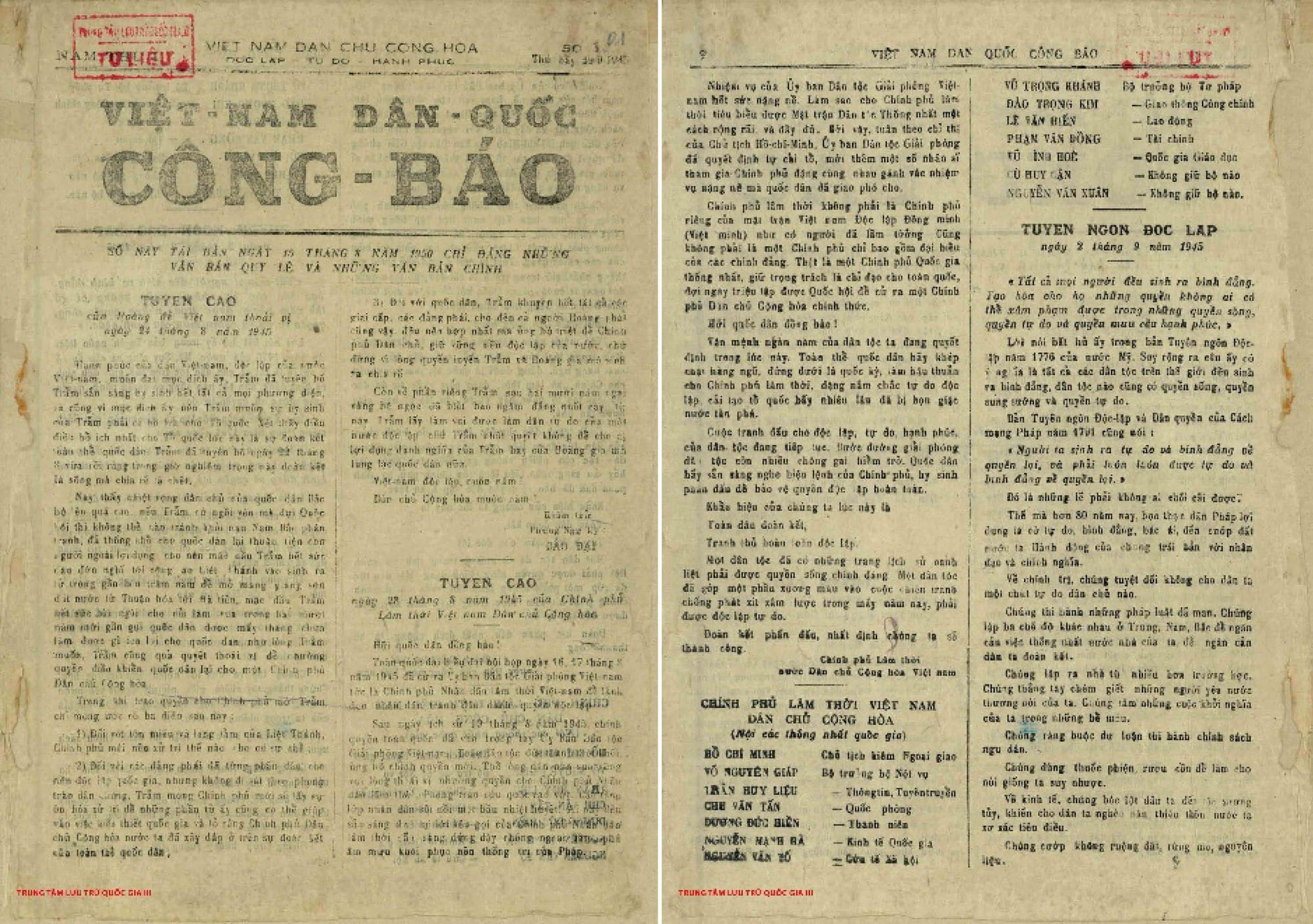 Ngày 28/8/1945, Chủ tịch Hồ Chí Minh đã ký Tuyên cáo thành lập Chính phủ lâm thời nước Việt Nam Dân chủ Cộng hòa, bao gồm 13 bộ, trong đó có Bộ Lao động và Bộ Cứu tế xã hội – tiền thân của Bộ LĐTBXH.