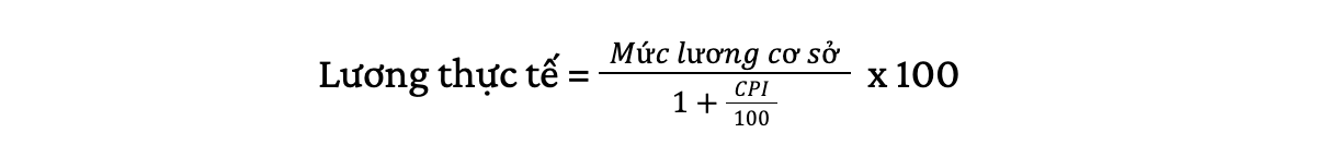 Mối quan hệ giữa lương thực tế, mức lương cơ sở và CPI có thể được thể hiện qua công thức: