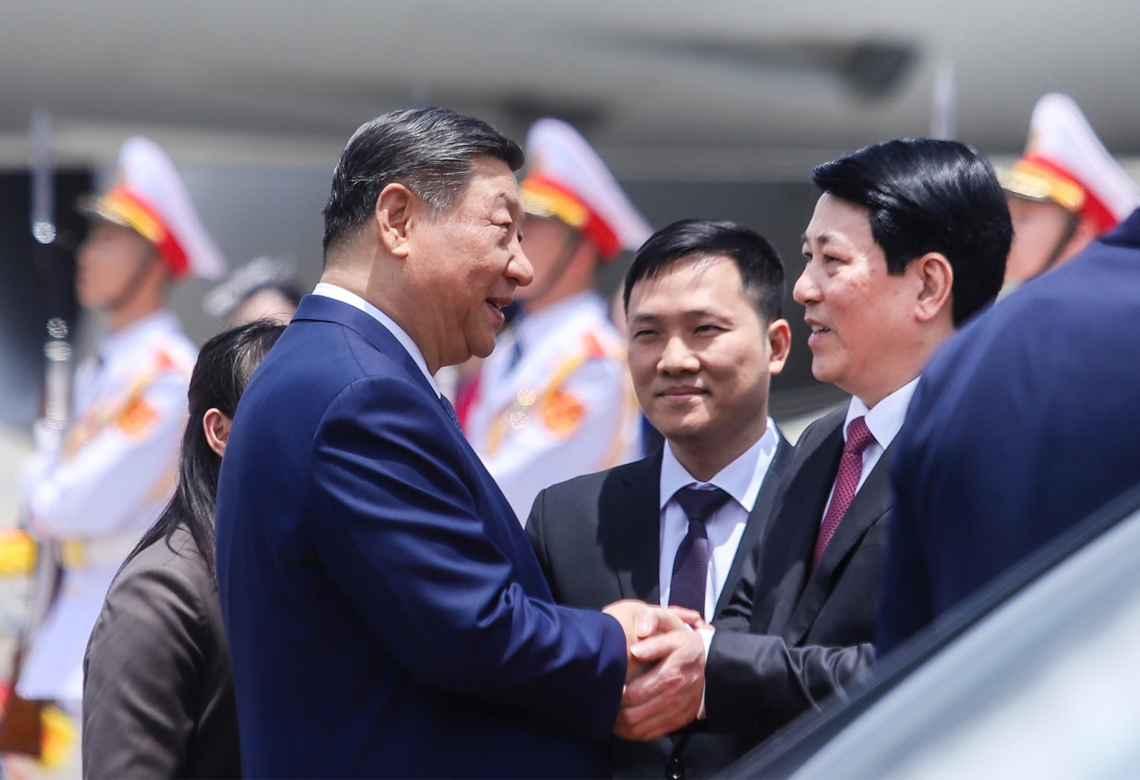 - Trưa 14/4, ông Tập Cận Bình đến Hà Nội. Chủ tịch nước Lương Cường đã đích thân ra sân bay Nội Bài đón ông Tập Cận Bình với những nghi thức vô cùng long trọng.