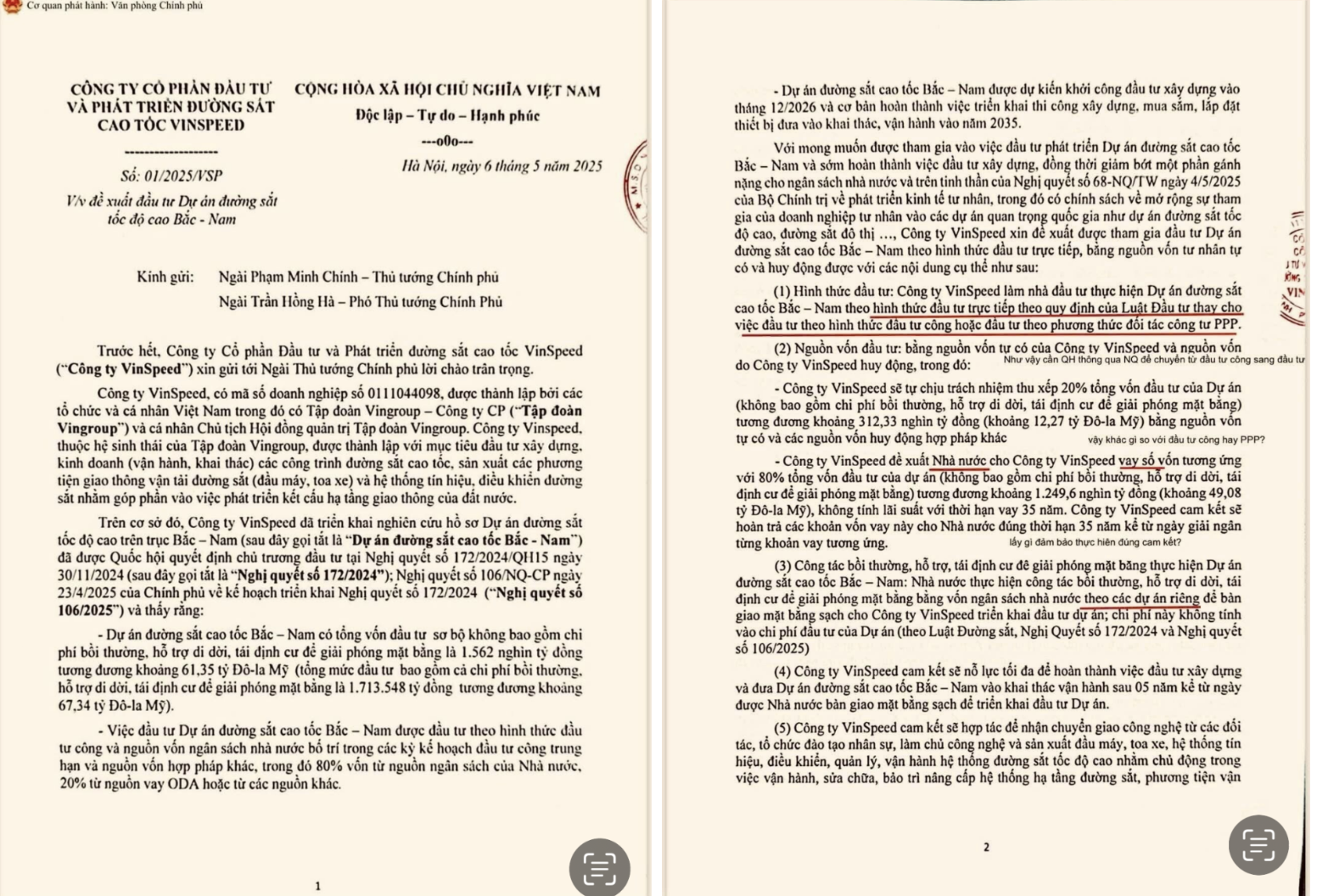 Ngày 14/5, Công ty Cổ phần Đầu tư và Phát triển Đường sắt cao tốc VinSpeed chính thức đề xuất đầu tư dự án đường sắt cao tốc Bắc – Nam với lộ trình táo bạo: khởi công dự án trước tháng 12/2025 và đưa vào vận hành trước tháng 12/2030.