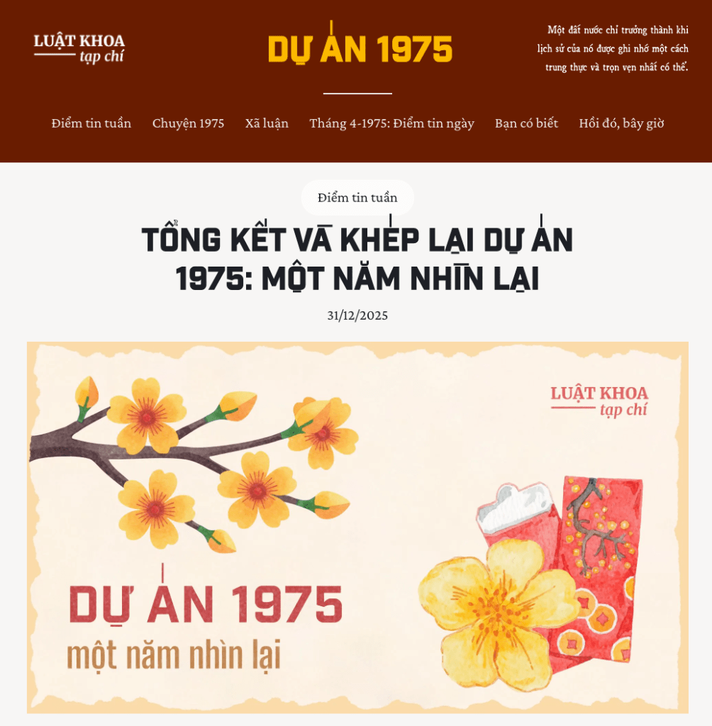 - Dự án 1975: Khởi chạy tại trang 1975.luatkhoa.com, đây là chuyên mục chuyên sâu nhằm nhìn lại các sự kiện lịch sử năm 1975 từ nhiều góc nhìn – chính trị, cá nhân, văn hóa.