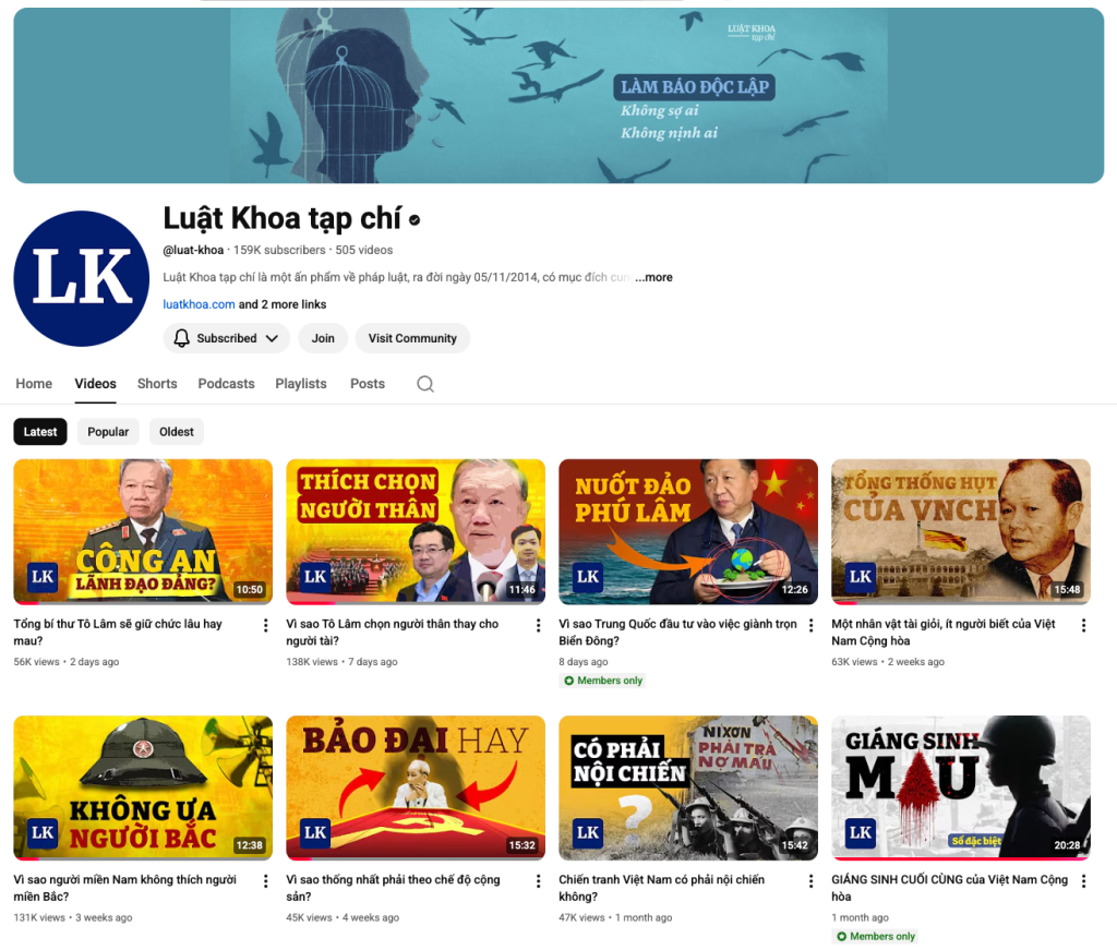 Trong năm 2025, chúng tôi xây dựng lại chiến lược cho mảng truyền hình. Kênh “Luật Khoa tạp chí” truyền thống tập trung vào video tư liệu thay vì đăng nội dung đa dạng như xưa. Đồng thời, về cuối năm, chúng tôi mở hai kênh “Luật Khoa Clips” và “Trịnh Hữu Long” để chuyên đưa tin và bình luận thời sự.
