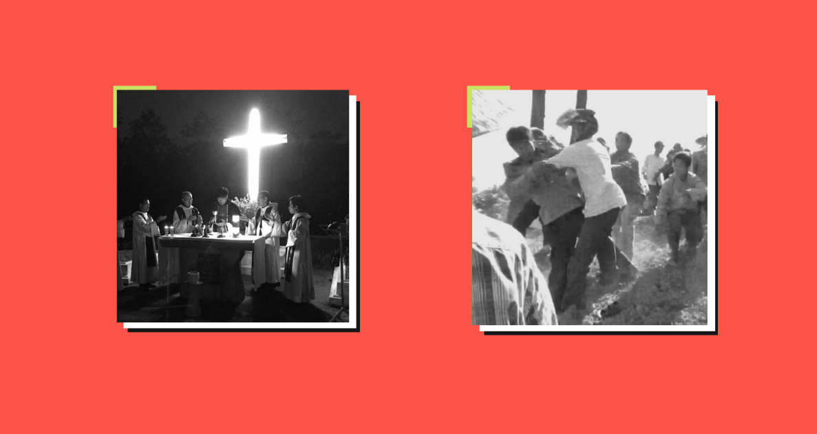 Tháng 3/2016, tượng chúa Jesus vừa dựng lên thì bị chính quyền cho nhiều phụ nữ, dân phòng, cán bộ đến giật sập tượng.