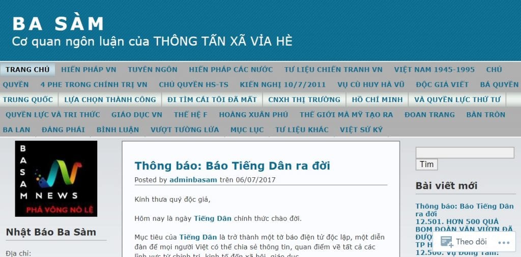 Trang blog Ba Sàm. Ảnh: chụp màn hình.