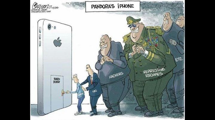 Nếu FBI viện vào an ninh quốc gia, thì Apple cũng có một vũ khí sắc bén khác là quyền tự do và bất khả xâm phạm thông tin của khách hàng. Tự do cá nhân là thành quả vô cùng kiêu hãnh của Hợp chúng quốc. Đặc biệt những bê bối về ăn cắp thông tin người dân đã từng xảy ra bởi các cơ quan an ninh, tình báo của nước này đã được Apple khai thác thành công và thể hiện được rõ ràng những cảnh báo về một tiền lệ xấu khi tiến hành mở một Backdoor trên các thiết bị di động của họ. Trong tranh chấp này, FBI với tư cách là cơ quan thực thi luật pháp, phải sử dụng đến những khả năng lý lẽ của mình để đối chọi lại những lập luận vốn được người tiêu dùng ủng hộ của Apple nhằm thuyết phục được toà án và nghị viện đưa ra những kết luận mà họ mong muốn thay vì sử dụng quyền lực công cộng – thứ quyền lực khét tiếng mà nhà nước nào cũng có. Đó là một biểu hiện tốt nhất của sự bình đẳng, thứ không dễ gì thấy được ở nhiều quốc gia.