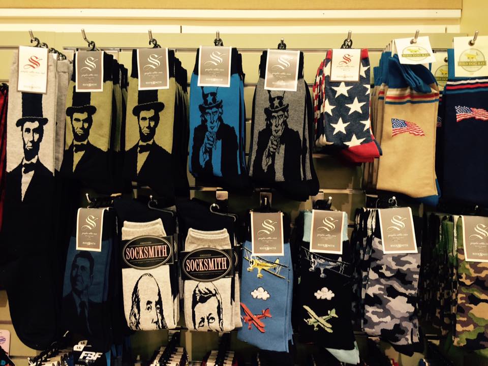 Khi tới thủ đô Washington vào năm 2016, tôi mê cái Văn khố Quốc gia của họ quá mà dành hẳn hai buổi lang thang trong đó. Ở đó có một quầy hàng lưu niệm bán những thứ liên quan đến lịch sử Mỹ. Tôi đến gian bán tất và thấy mặt mũi của đủ các tổng thống, kể cả Abraham Lincoln, được (hoặc bị) in lên những đôi tất này. Có nghĩa là khi bạn mang những đôi ấy vào thì mặt mũi các ông ấy sẽ nằm dưới chân bạn. Không tin bạn xem hình dưới đây thì biết.