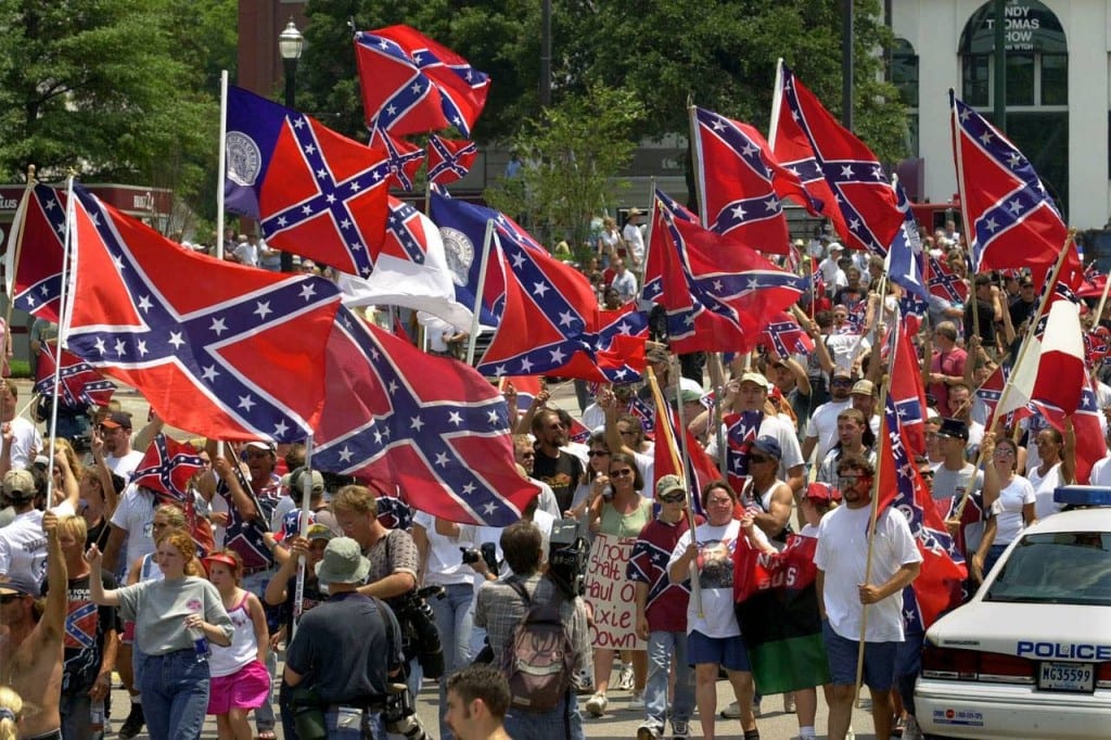 Lá cờ không chính thức của phe miền Nam thời nội chiến được sử dụng trong một cuộc tuần hành ở South Carolina năm 2000. Ảnh: Wall Street Journal.