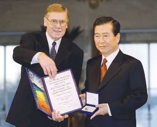 Tổng thống Kim Dae-jung được trao giải Nobel Hòa Bình vào năm 2000 nhờ những nỗ lực hàn gắn hai miền Nam Bắc Triều Tiên. Ảnh: Lostiempos.com
