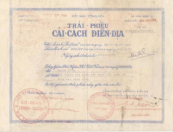 Theo bảng thống kê, chỉ trong vòng hai năm ngắn ngủi ngay sau Mậu Thân, có đến 240.000 mẫu đất (tức lên đến gần 100.000 ha đất) được phân phối lại cho người cày, tá điền và các nông dân ít ruộng đất.
